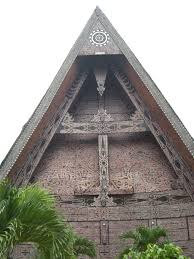 Gaya arsitektur Batak Toba di Ajungan Provinsi Sumatera Utara di Taman Mini Indonesia Indah
